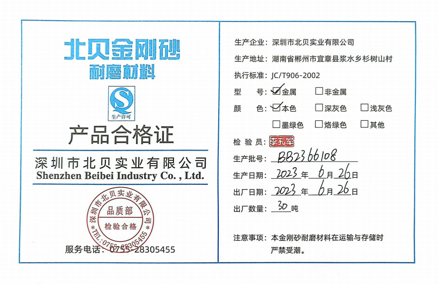 金剛砂檢測(cè)報(bào)告和合格證