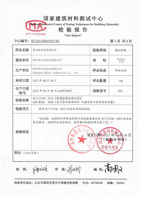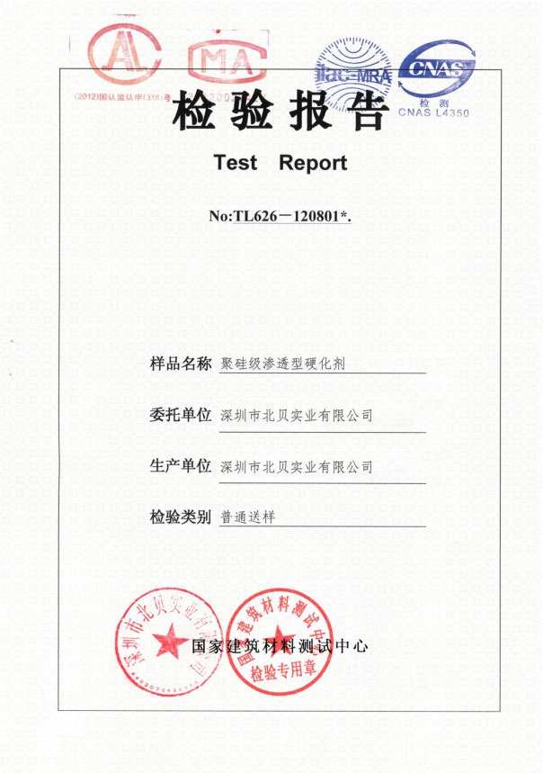 網(wǎng)站首頁(yè) » 企業(yè)榮譽(yù) » 聚硅級(jí)滲透型硬化劑檢測(cè)報(bào)告